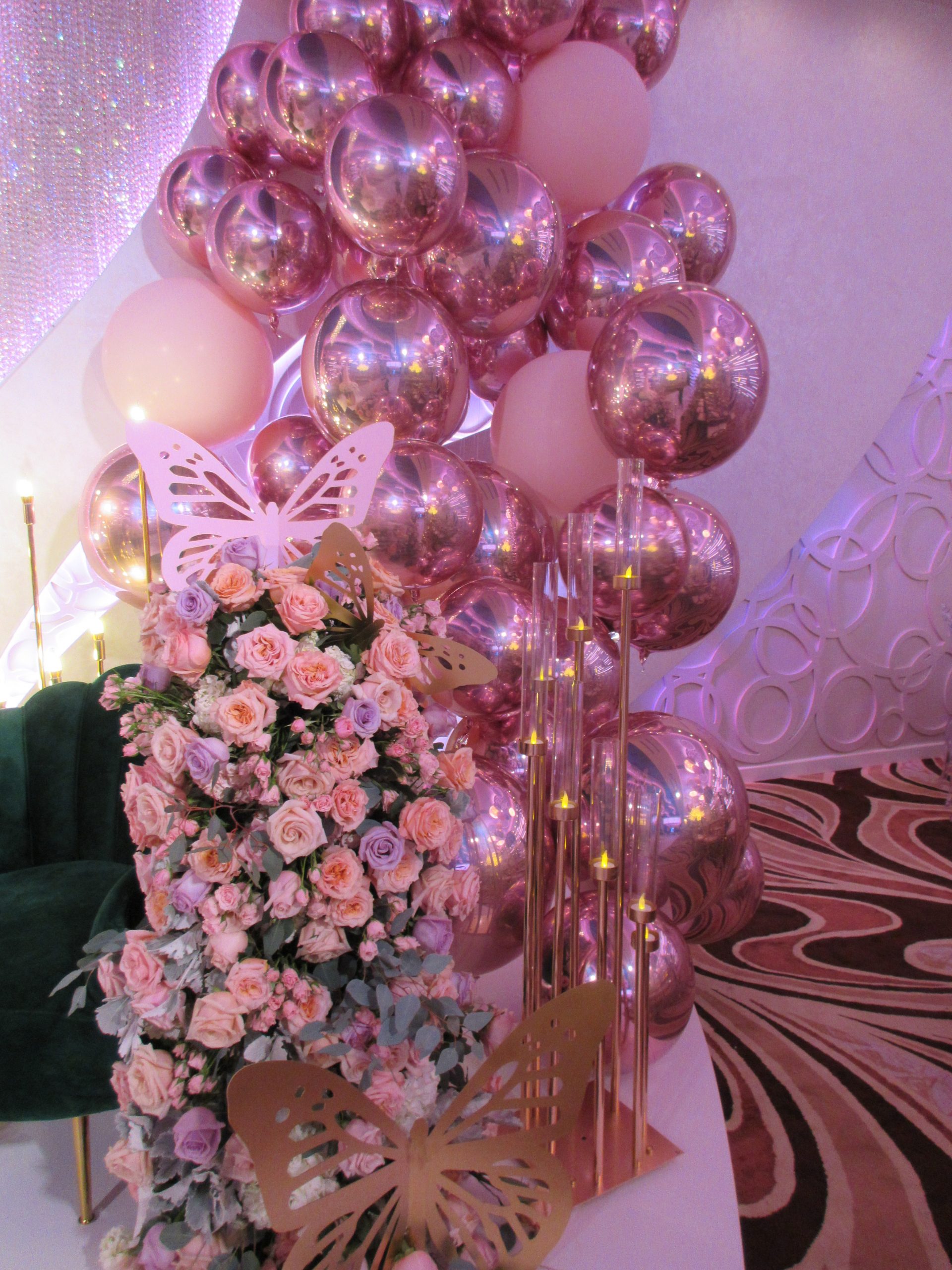 Please share a brief overview of your event details, including your color scheme, theme, and any design inspiration you have in mind. Keep in mind that we specialize in custom balloon decor, including fringe elements and large, shiny sphere rentals. We also offer backdrops, customized backdrop, marquees, cake stands and more. We specialize in crafting breathtaking balloons and exquisite custom designs to enhance your event and serve as the ideal centerpiece